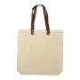Bolsa de Compras con asas de cuero, en tela Canvas Algodón laminado natural de 10oz. (280 g/m2). Contiene doble manilla de Cuero natural, 8 remaches color bronce envejecuido y cierre interior imantado.