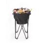 Bolso cooler grande de 50 litros de capacidad, en tela poliéster 600D/PVC. Interior térmico aislante de PEVA y acolchado con esponja PE FOAM. Cuenta con asas laterales para sujeción, cierre eclair 360°, ventana cuadrada con cierre velcro en la parte superior (tapa), para retiro ágil de productos y tapón de goma inferior para despiche de líquido acumulado dentro del cooler. Montado sobre estructura de patas metálicas plegables color negro, presentadas en bolsa de poliéster negro.