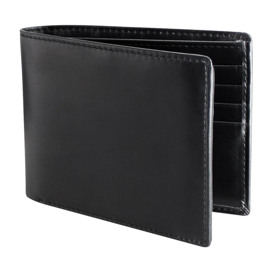 Deluxe Billetera de cuero natural liso Negro. Finas terminaciones. 16 compartimentos interiores (3 secciones). Alta resistencia al uso. Presentación en bolsa frozen y caja de cartón forrado negro texturado.