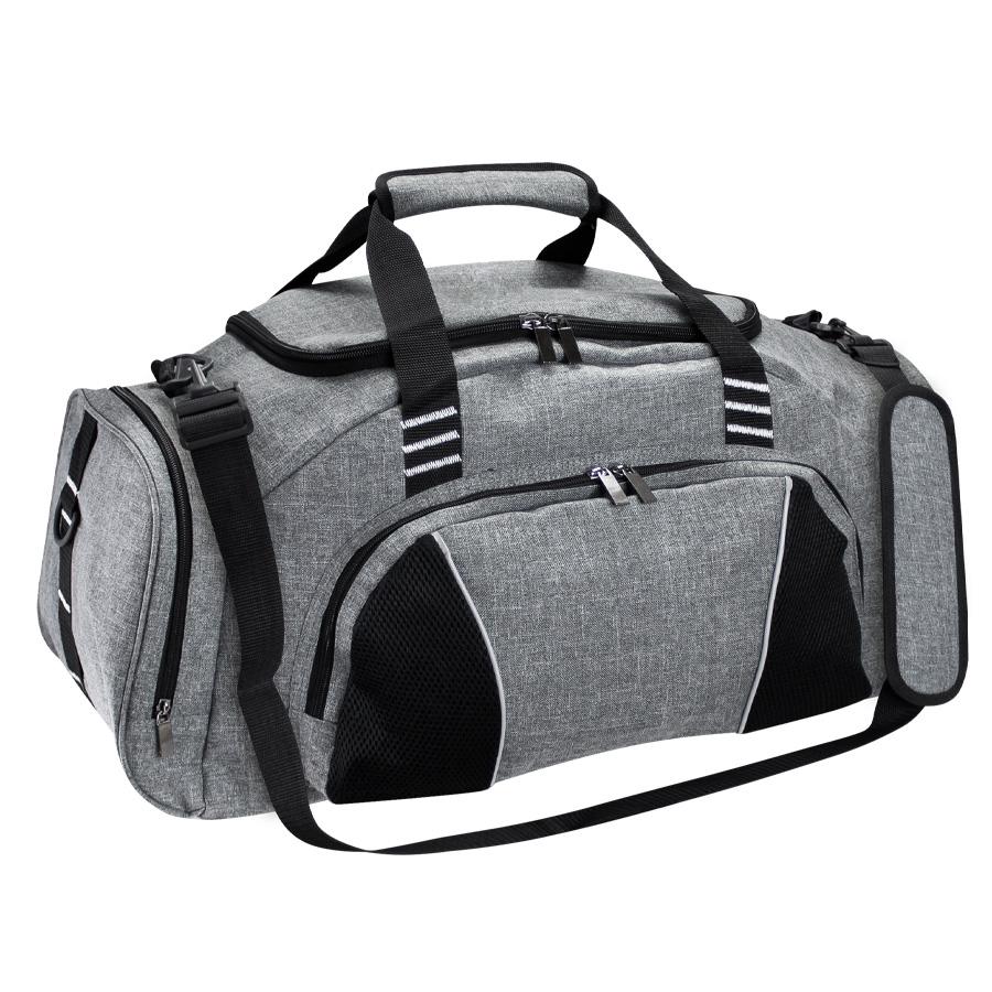 LUXURY Bolso Deportivo y de Viaje grande, modelo “TRAVEL & SPORT”. Tela Polyester Two-Tone impermeable. Capacidad 50 litros, tamaño 57 x 32 x 28 cm. Incluye compartimento lateral independiente para Zapatos. Compartimento principal y Bolsillo lateral con vivo y costuras reforzadas. Base protectora de Cartón Forrado. Bolsillo delantero independiente para bordar logo. Un bolso de lujo para sus viajes o paseos.
