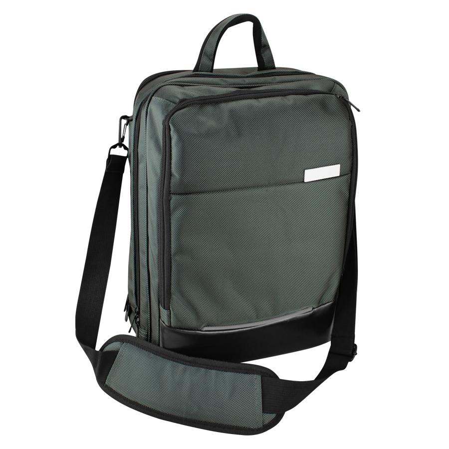 Deluxe Maletín Porta-Notebook modelo “XD”, con doble compartimento interior + bolsillo delantero y placa metálica de 5 x 1.5 cm para grabar logo. Incluye bolsillo posterior con asas para convertir en Mochila. Tela Polyester 1680D.