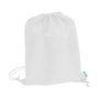 Mochila tipo Morral, fabricada en tela reciclada RPET, con tiras de cordón también el tela reciclada RPET .
