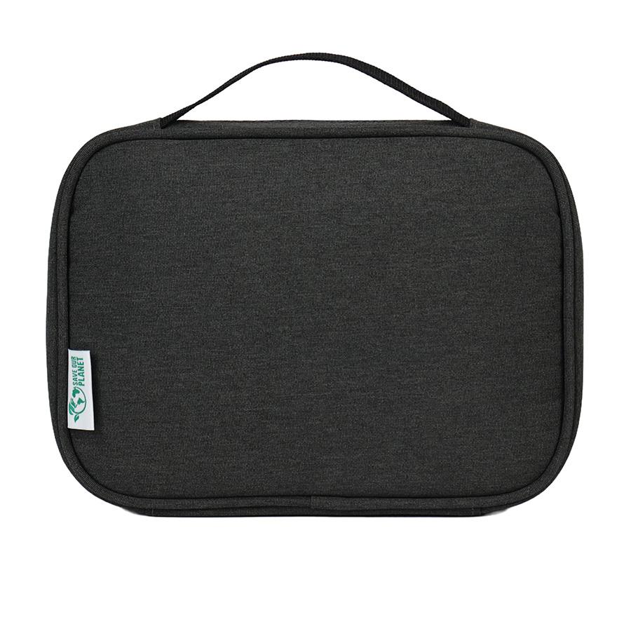 Bolso organizador grande para documentos, tecnología y esenciales de viaje. También es ideal para transportar cargadores, conectores, y otros. Fabricado en tela reciclada RPET poliéster 300D/PU bitono.