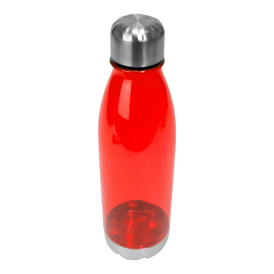 Botella plástica PET color translúcido, con fondo y tapa de Acero inoxidable, modelo “VIVID”. Producto BPA FREE, para el contacto con líquidos y alimentos. Capacidad 700ml. Presentación en bolsa OPP + caja de regalo de cartón kraft.