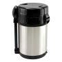 Termo de Acero inoxidable de 2 litros, con 3 compartimentos plásticos interiores independientes. Ideal para mantener alimentos tibios por más tiempo, para el almuerzo o la colación escolar. Incluye juego de cubiertos metálicos (tenedor y cuchara pequeños) en contenedor plástico negro. Presentación en estuche de cartón blanco.