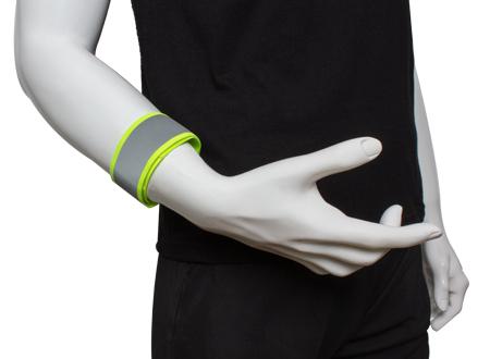 Banda (cinta) elástica reflectante para brazo, con 3 ajustes de velcro. Se puede usar en muñeca, antebrazo o sobre el bíceps. Viene en práctica bolsa de polipropileno con orificio para colgar en ganchera.