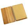 Cuaderno Ecológico con Tapas duras punta redondeada 100% de madera de Bamboo de 3mm de espesor, interior 70 hojas lineadas interiores de papel kraft reciclado de 14.3 x 20 cm y anillado metálico doble cero.