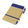 Libreta Ecológica con tapas de cartón reciclado, 70 hojas interiores blancas (croqueras). Incluye cierre elasticado de color y bolígrafo ecológico al tono.