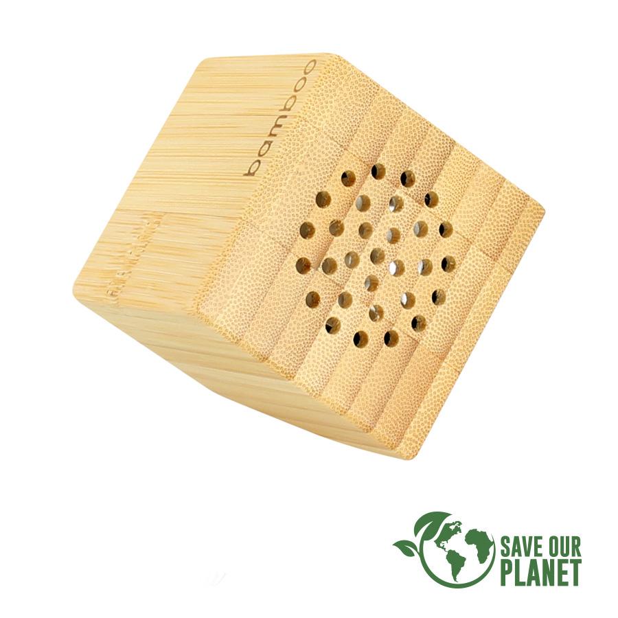 Parlante 100% de madera de Bamboo, con conector USB a DC / AUX Jack 3.5mm.