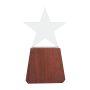 Elegante Trofeo modelo “Lonely Star”, base de madera barnizada y estrella de cristal en su parte superior. Presentación en caja de cartón forrado negro con cierre imantado, interior acolchado de espuma y tela poliéster satinado negro, con troquel.