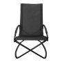 Silla mecedora negra con apoya-brazos, modelo “Ventus”. Estructura de Aluminio color negro, asiento de Textilene negro. Descanso y relajo verdaderos.