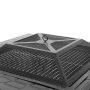 Brasero / Parrilla para Carbón o Leña, de Acero negro, modelo “Luxor”. Altura para cocinar: 31cm. Rejilla cromada para cocinar: 51 x 51 x 4mm. Rejilla para carbón: 34 x 34cm x 3.5mm. Tapa con rejilla: 52 x 52 x 8.5cm. Bowl para fuego: 57 x 57 x 11.5cm. Patas: 7 x 7 x29.5cm. Incluye Manual instructivo de armado en español.