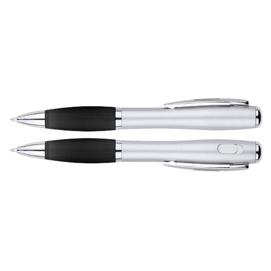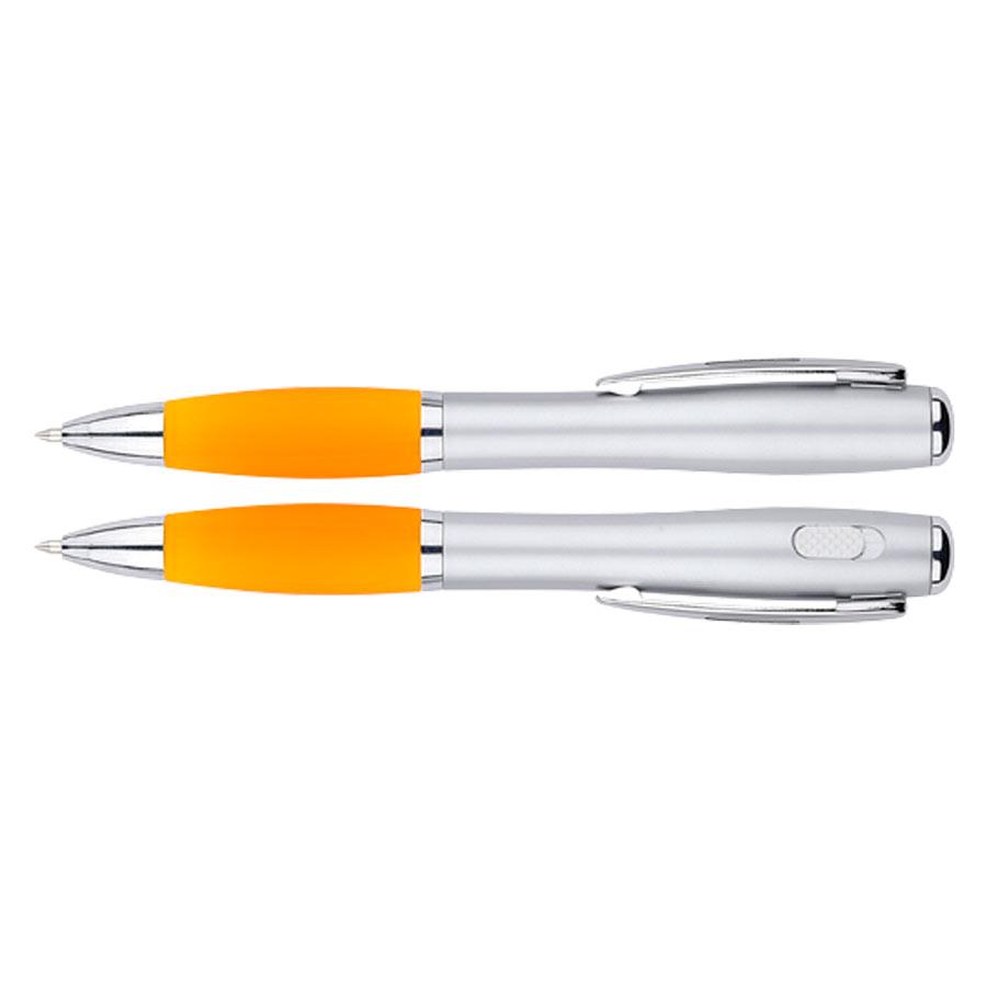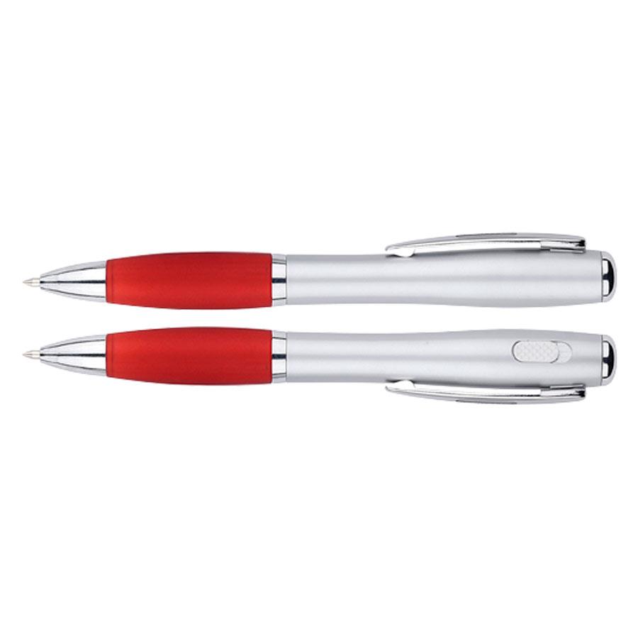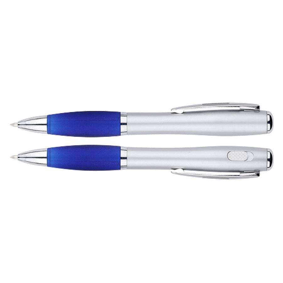 Bolígrafo plástico con linterna LED. Escritura Azul.