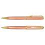 Bolígrafo Metálico Encobrizado, con terminales dorados. Escritura azul.
