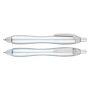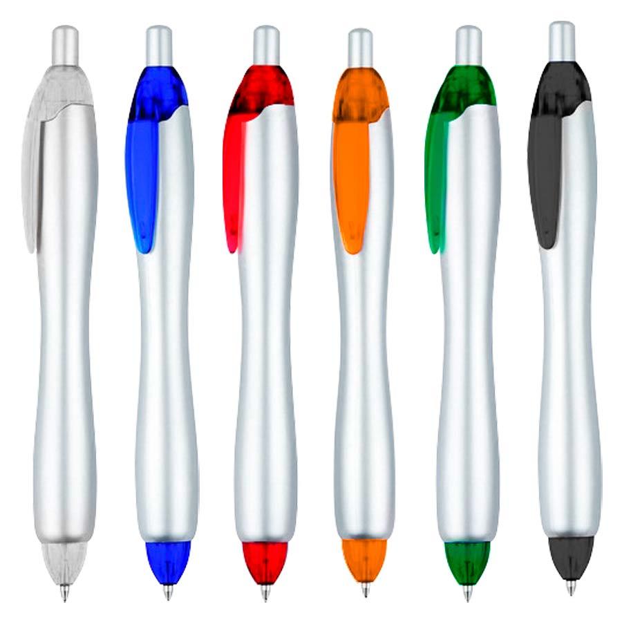 Bolígrafo “Gordito Silver” con cuerpo plateado opaco y terminales de color translúcido. El bolígrafo más vendido de Europa el año 2012. Escritura azul.