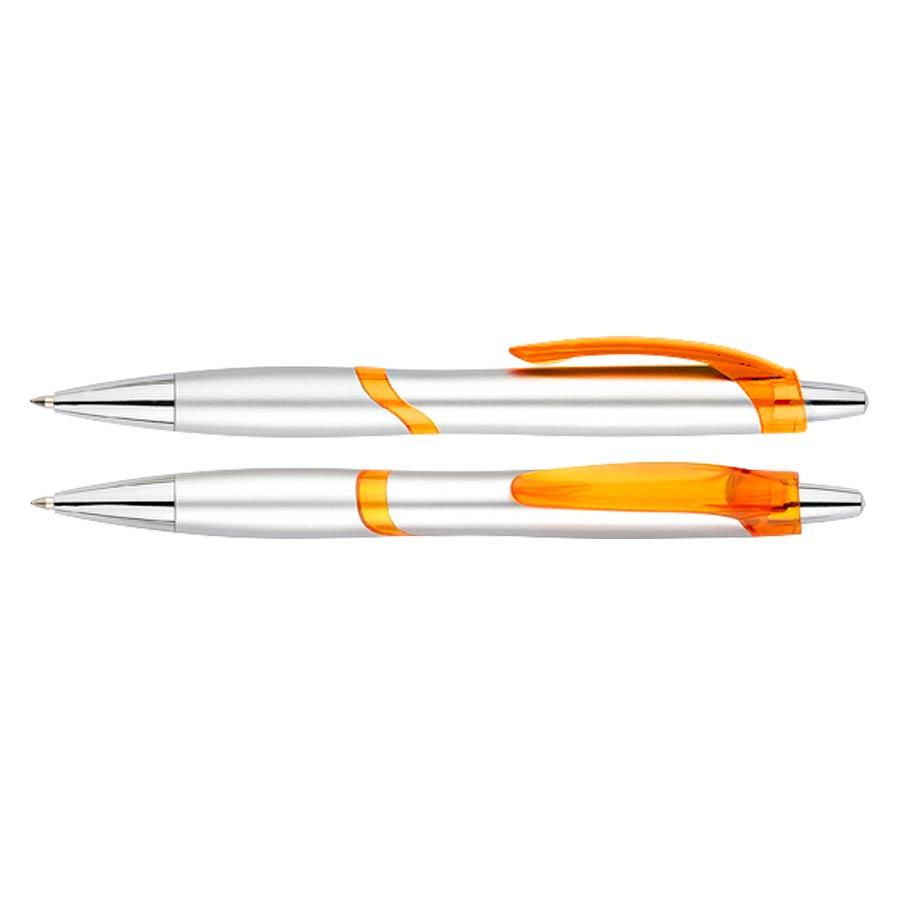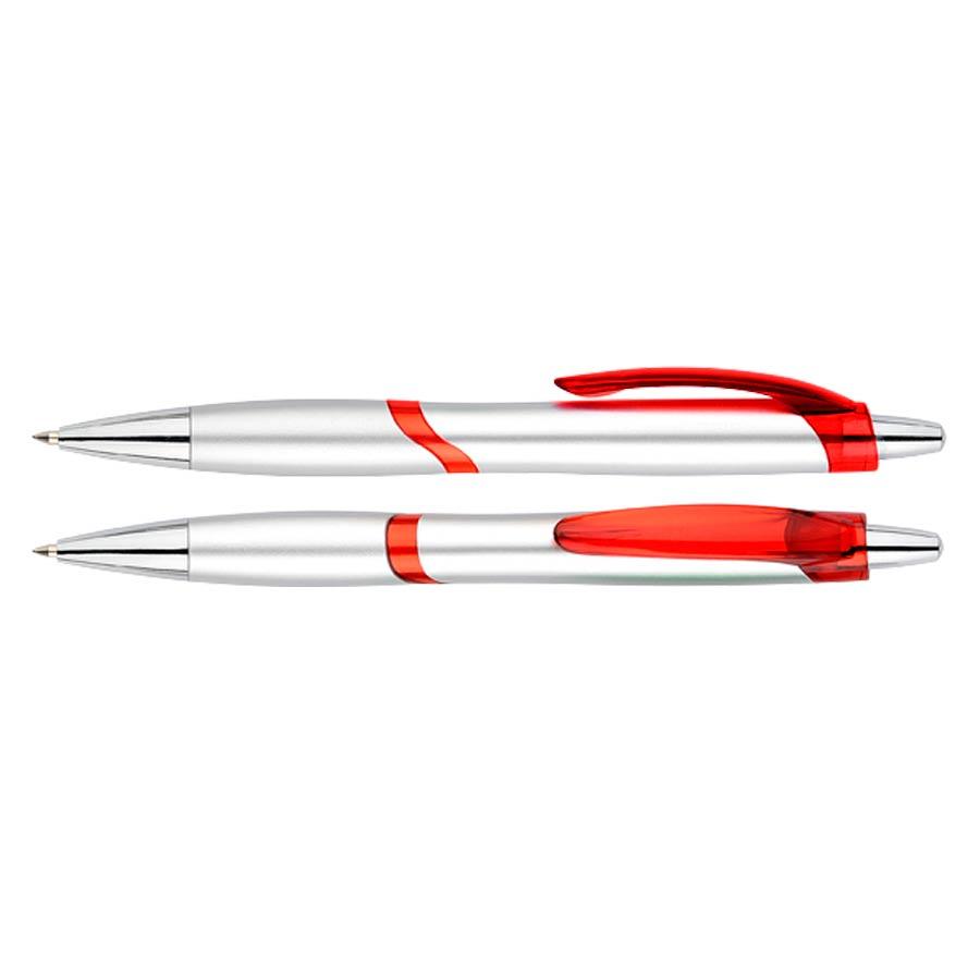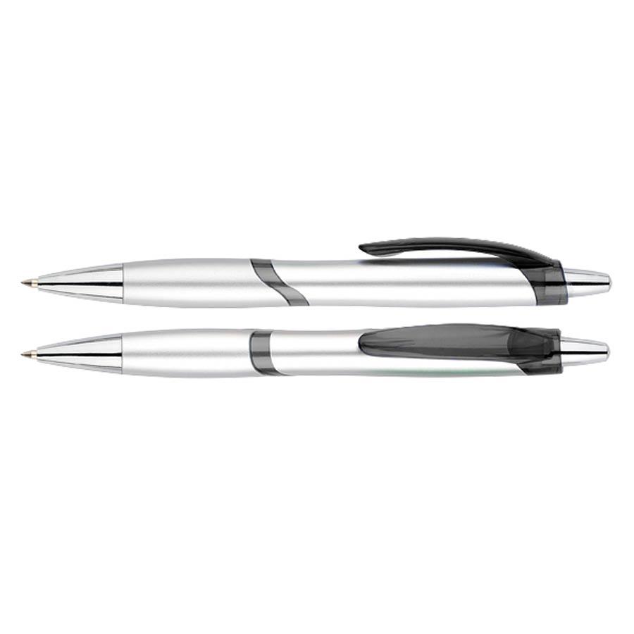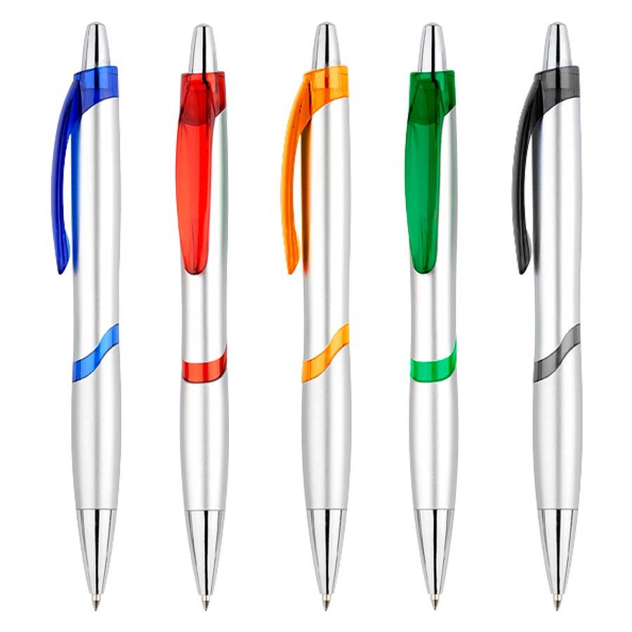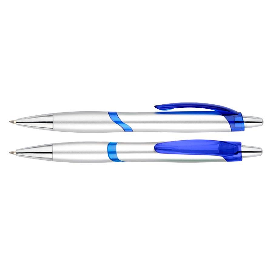 Bolígrafo plástico plateado “Júpiter”. Escritura Azul.