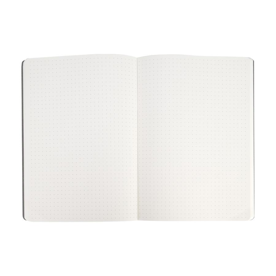 Deluxe Cuaderno tamaño A5 modelo “SOFT”, con tapas blandas de Termo-PU acabado mate, con 96 finas hojas color crema FSC IVORY PAPER de 80g/m2 con punteado “mental”. Único con lomo redondeado, tecnología “Spine Glue Binding”, para fácil arranque de hojas.