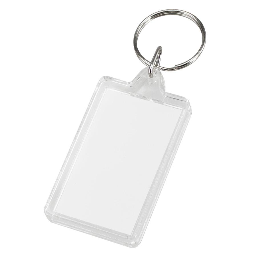 Llavero porta-foto de Acrílico transparente. Para insertar papel impreso en compartimento interior.