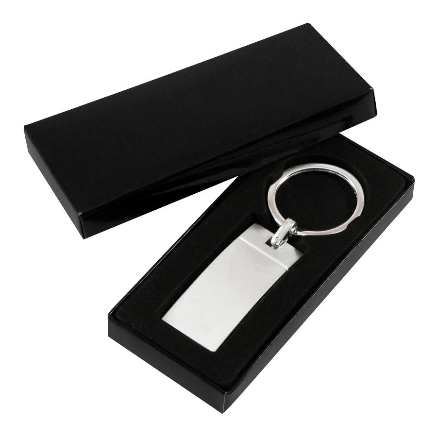 Llavero Metálico satinado, modelo “Wave”. Presentación en estuche laminado negro con cuna aterciopelada.