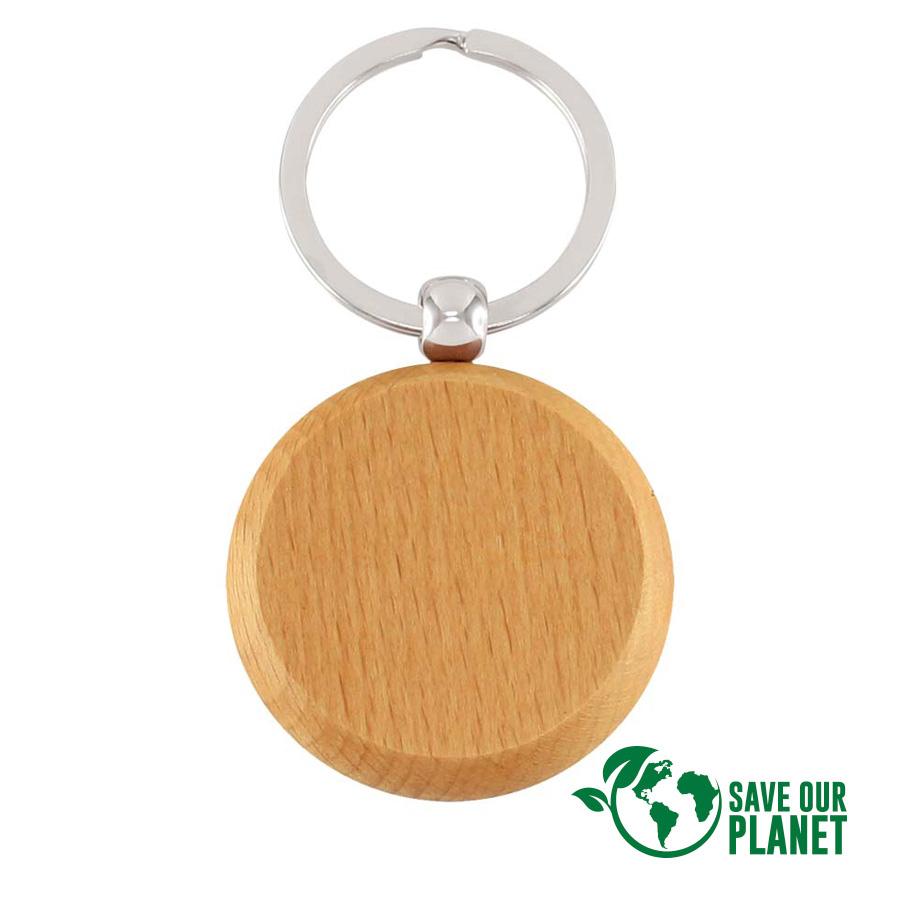Llavero Redondo de Madera de Bamboo. Presentación en estuche laminado negro con cuna aterciopelada.