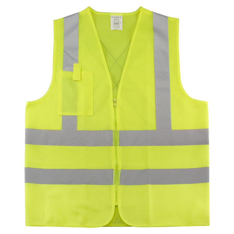 Chaleco Reflectante de Seguridad modelo “Traffic”, 100% tela poliéster fluorescente con bandas reflectantes color plateado de 5 cm. de ancho. Incluye cierre eclair y bolsillo delantero superior derecho. Cumple con norma vigente de Ley del Tránsito y norma legal EN 471.