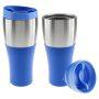 Coffee Mug grande de 500cc plástico “PP-FRESH”, tapa rosca y banda de Acero Inoxidable ideal para imprimir logos. Presentación en caja de cartón plateado.