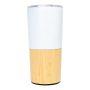 Mug de metálico doble pared aislante, interior Acero inoxidable 201 SS, exterior cubierta inferior de bamboo y cubierta superior de Acero inoxidable 304 SS, modelo “AURUS”. Producto BPA FREE, para el contacto con líquidos y alimentos. Fondo de silicona negra ABS anti-deslizante. Tapa removible de plástico PS Crystal Clear con sello cilíndrico de silicona y sistema de cierre/apertura antiderrame. Capacidad 500ml. Presentación en bolsa OPP + caja de regalo de cartón kraft.