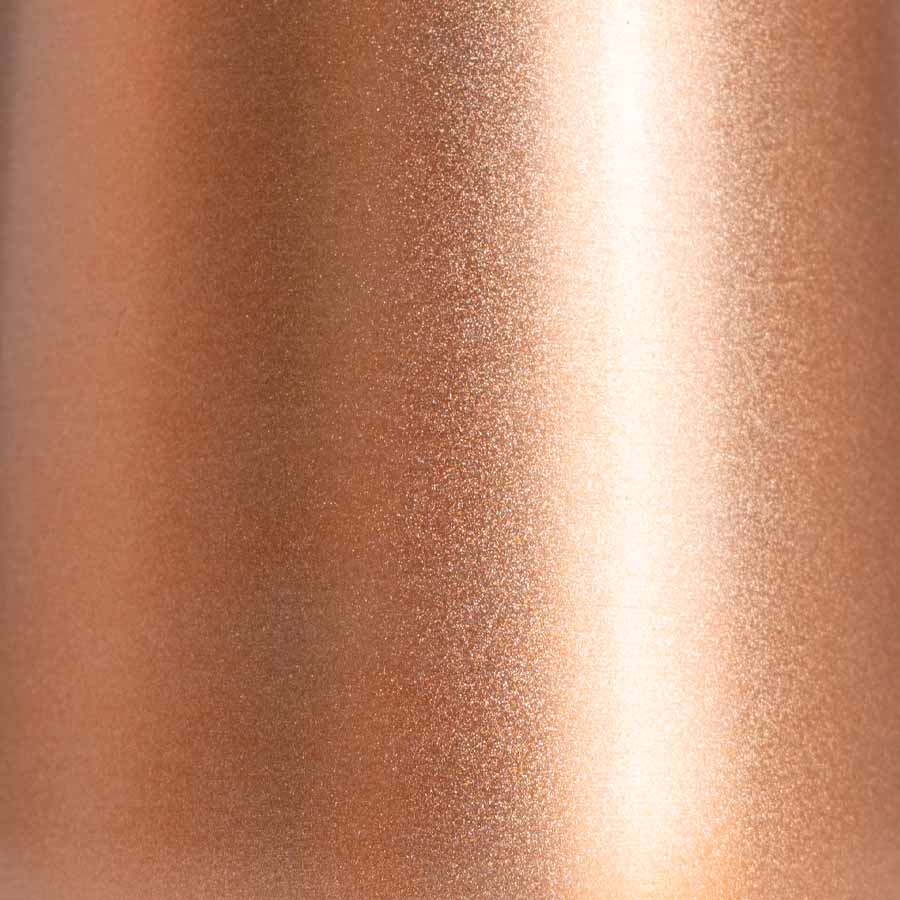Mug metálico doble pared aislante, interior plástico PP, exterior Acero inoxidable 201 SS recubierto con pintura POWDER COAT color cobre. Producto BPA FREE, para el contacto con líquidos y alimentos. Fondo de silicona negra ABS anti-deslizante. Tapa removible de plástico PS Crystal Clear con sello cilíndrico de silicona. Capacidad 600ml. Presentación en bolsa PP + caja de regalo de cartón negro.