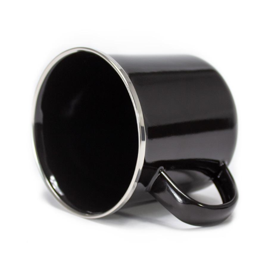 Tazón de acero enlozado “Enamel” de 350cc. con cobertura negra. Único con borde de Acero Inoxidable, que entrega higiene y protección al contacto con tu boca.