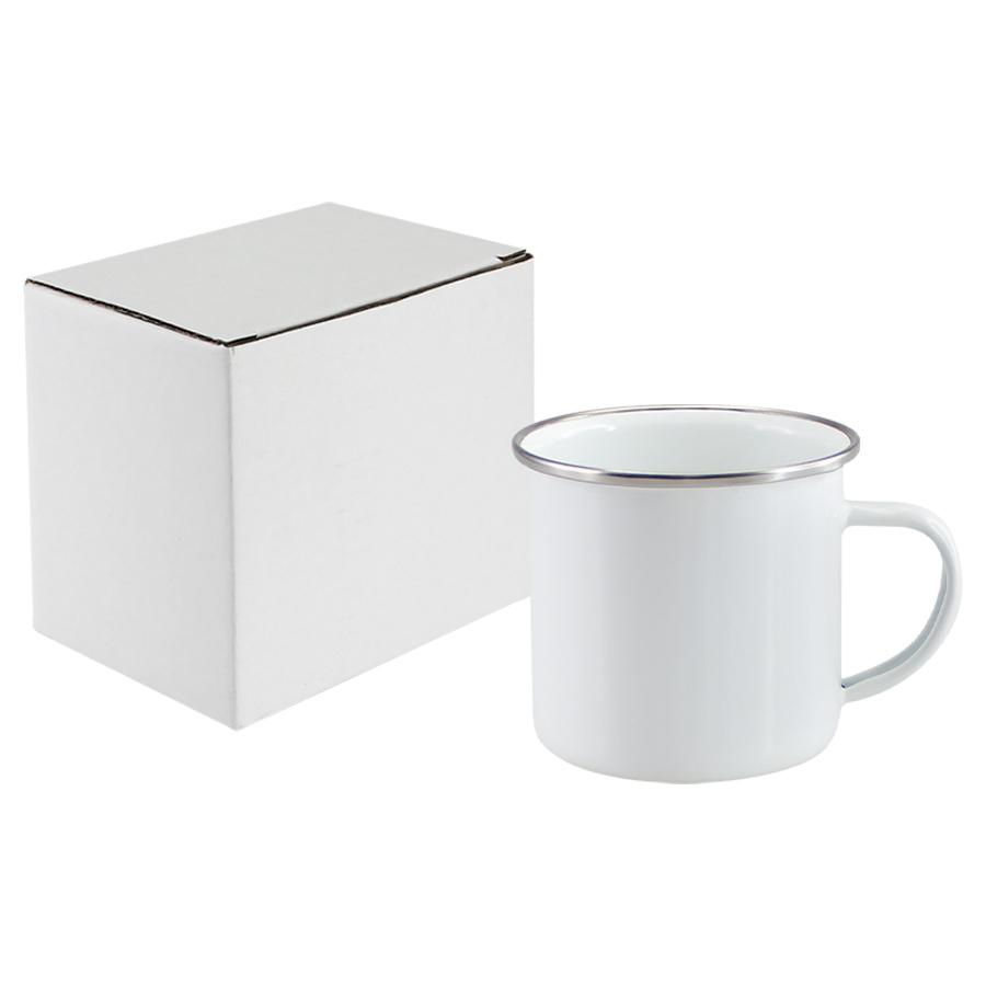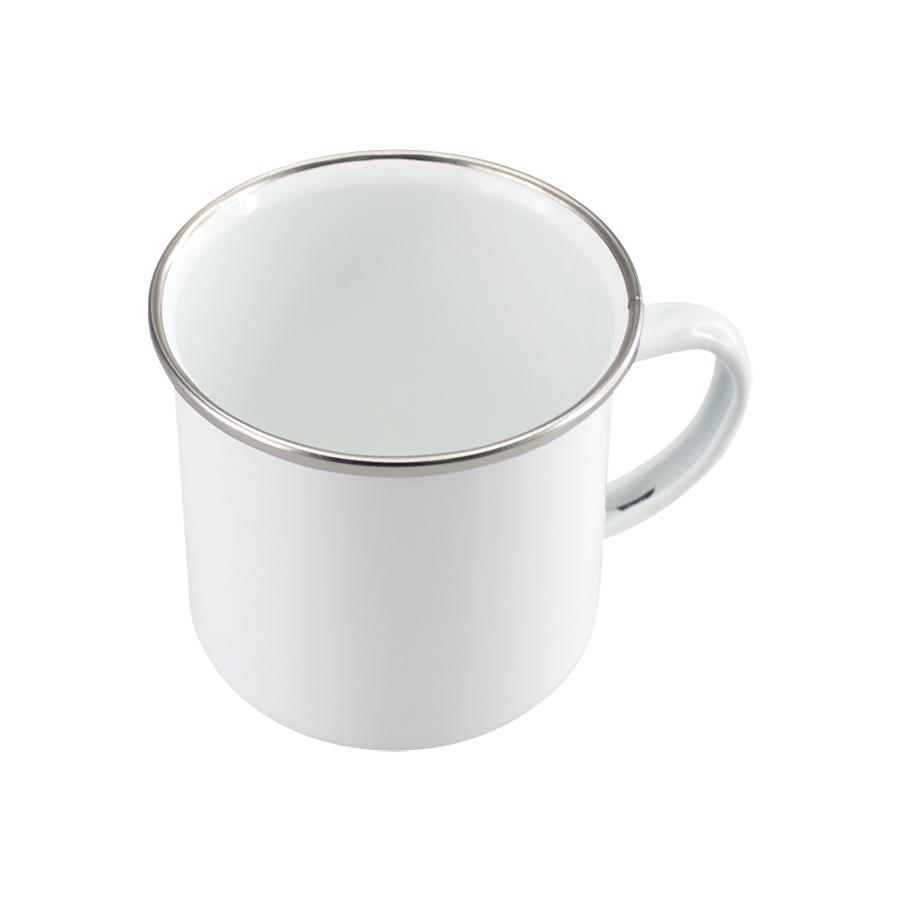 Tazón de acero enlozado “Enamel” de 350cc. con cobertura para Sublimación. Único con borde de Acero Inoxidable, que entrega higiene y protección al contacto con tu boca.