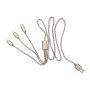 Deluxe Connect Multicargador 4-en-1 Metálico color Gris Titanio. Multi-cables con terminales de carga USB / Micro USB / Lightning / Type C. Compatible con dispositivos Android, Apple y Type C. Presentación en elegante bolsa OPP con orificio para colgador de ganchera. Producto con aprobación CE, ROHS, FC.
