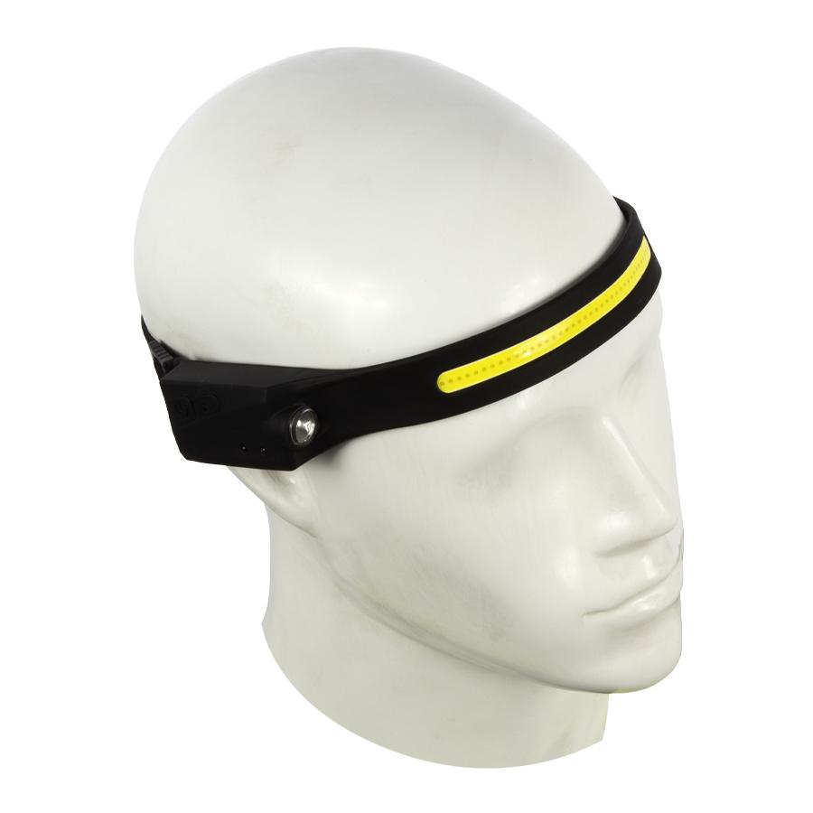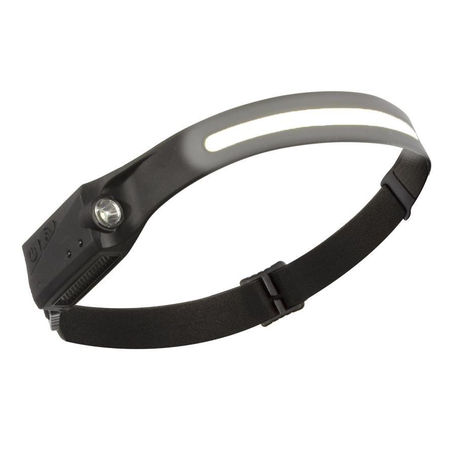 La mejor linterna LED para cabeza del mercado. Contenida en banda elástica de silicona negra con strap tamaño ajustable. Recargable con terminal USB, no usa pilas convencionales. Contiene 2 linternas LED: una banda frontal COB LED enfoque abierto + 1 luz XPE LED lateral enfoque concentrado. Ambas luces LED de alta intensidad (350 LUMENS), Cada luz LED con 2 funciones de intensidad + una quinta función estroboscópica (titila). Tiempo de Carga: 2 horas, tiempo de uso: hasta 8 horas. Contiene cable cargador USB / TYPE-C. Contiene sensor de encendido/apagado y displasy de poder. Contiene batería interna (built-in) de 1200mAh. Genial para uso en labores hand-free (manos libres): ej. bodegas, labores de construcción, manualidades y para hacer deportes nocturnos al aire libre (running, bicileta, etc)